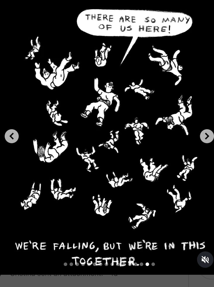 “We’re falling, but we’re in this together.” The New Yorker’s Nadav Machete (@nadav_machete) illustrates tales from the abyss.